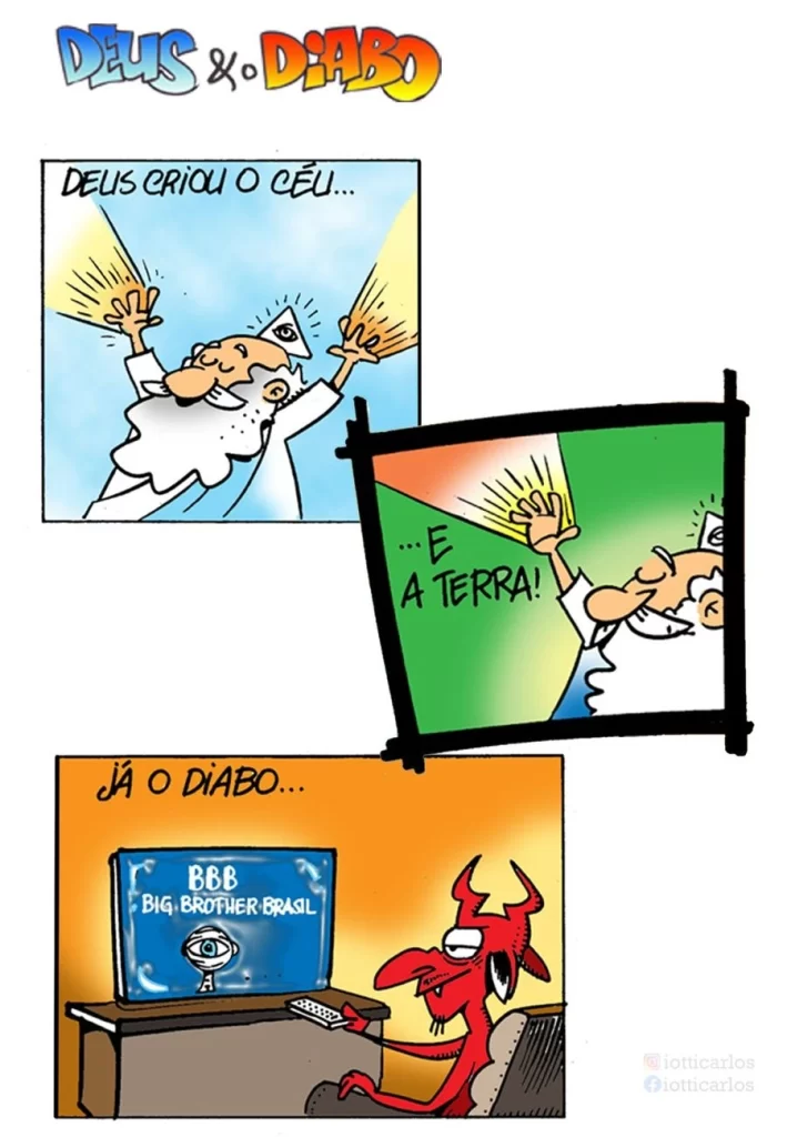 Deus & o Diabo trabalham em uma agência de propaganda - a primeira do universo, e ali criam tudo que nos rodeia. Deus é o Redator e o Diabo o Diretor de Arte. Deus tem excelentes ideias: Faça-se a luz! O Diabo vem e cria a conta e a bandeira vermelha. Acompanhe toda semana as tiras desta dupla inseparável, aqui na Coluna do Iotti na Sler.