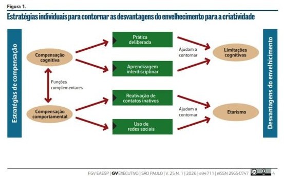 A criatividade envolve múltiplos aspectos inter-relacionados, que se modificam ao longo do envelhecimento e são influenciados pelo contexto organizacional. Esse processo dá origem ao paradoxo do envelhecimento e da criatividade: ao mesmo tempo em que surgem desvantagens, como limitações cognitivas e etarismo, também emergem vantagens, como acúmulo de conhecimento e ampliação de redes de contatos profissionais.
